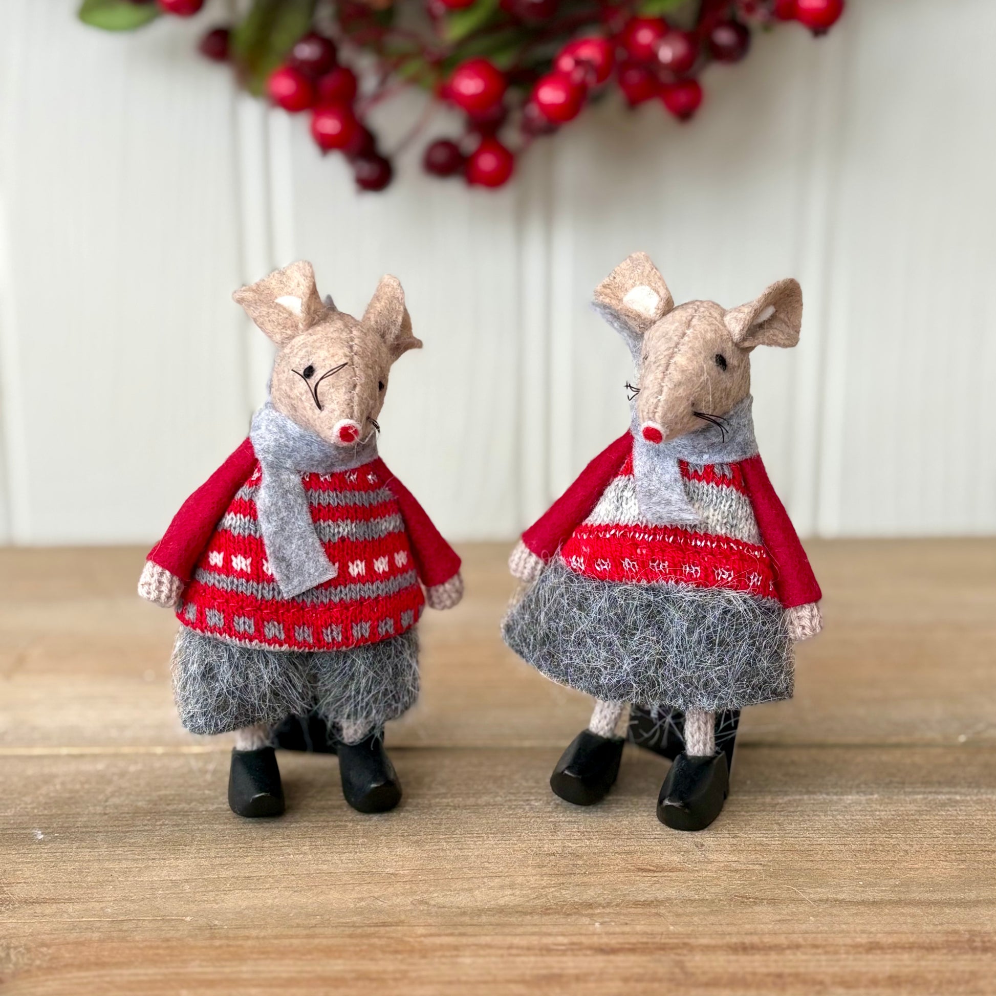 Each felt mouse figurine is crafted with attention to detail, from their little red noses to their soft fuzzy skirts and trousers. Whether you're searching for a unique Christmas gift, a rustic farmhouse ornament, or a sweet collectible figurine, these little holiday mice are sure to spread joy and festive spirit in any home.
